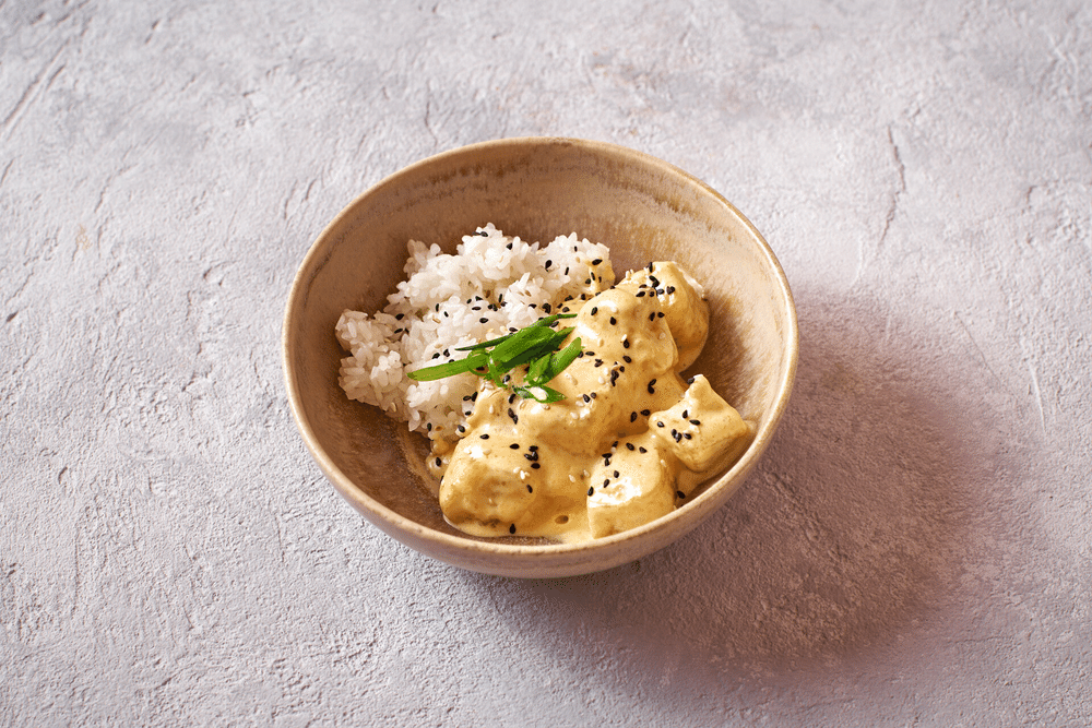 Белая рыба с рисом в сливочном карри
