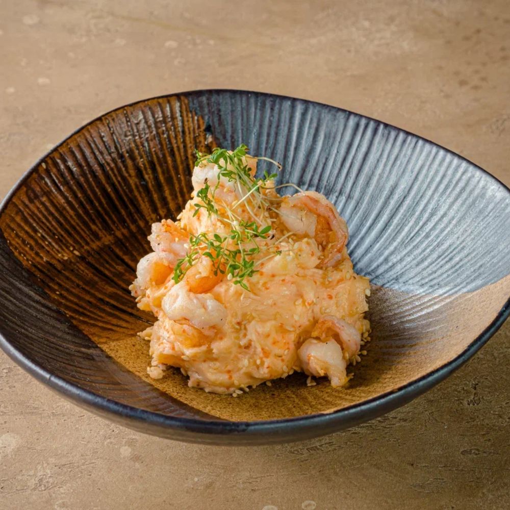 Салат с лососем и морепродуктами в соусе сливочный васаби
