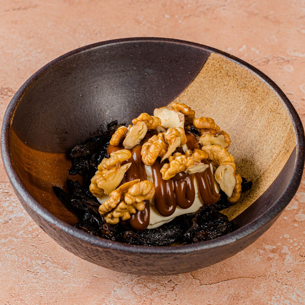 Сливочный сыр, чернослив, белый шоколад, грецкий орех, сливки