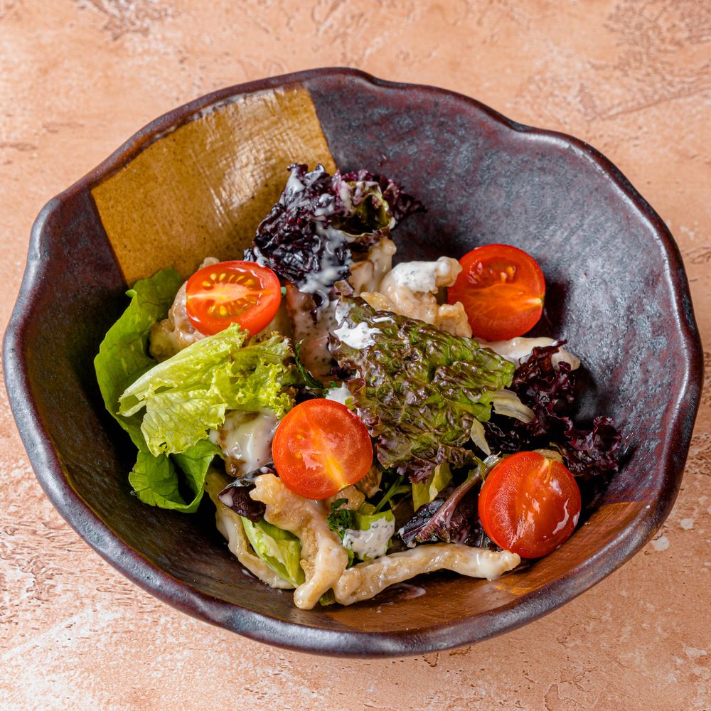 Филе куриного бедра, микс салатов, черри, беби картофель, соусы: трюфельный, цитрусовый майонез