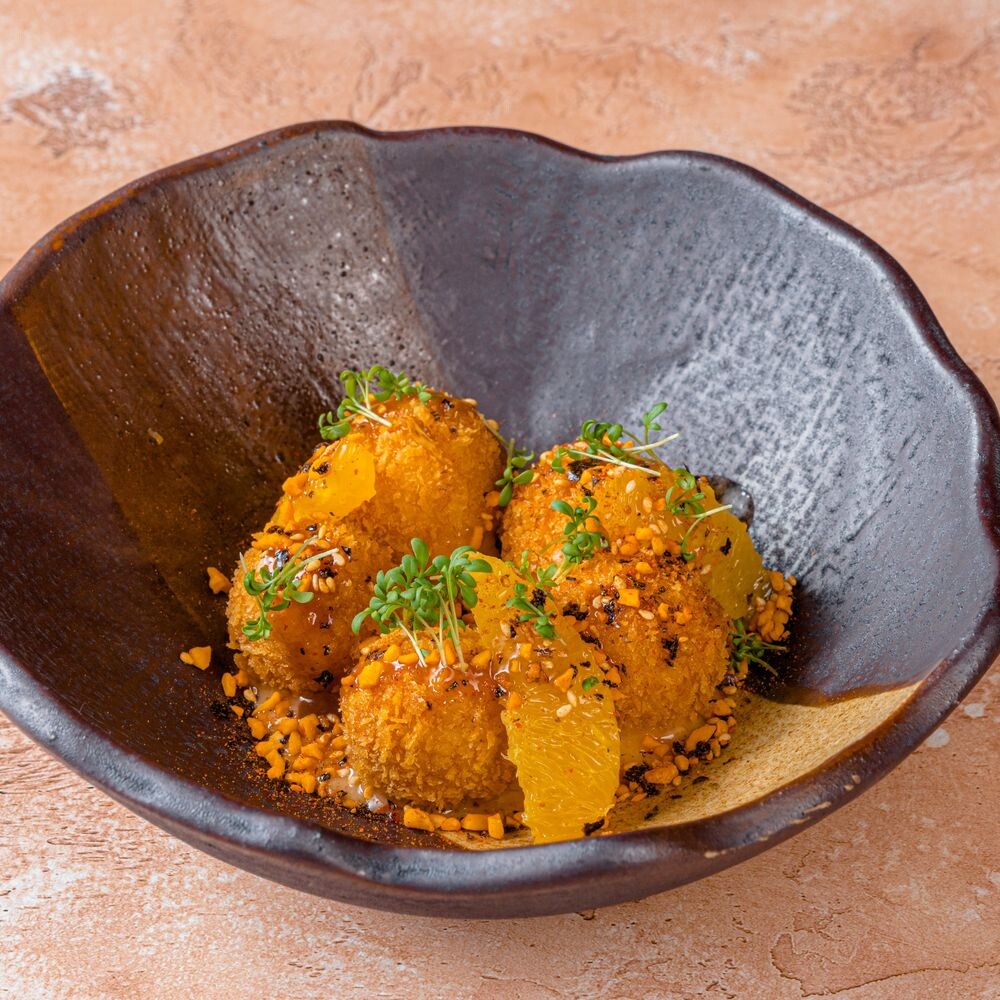 Креветки, кальмар в сухарях панко, апельсин, соусы: окиси, апельсиновый терияки