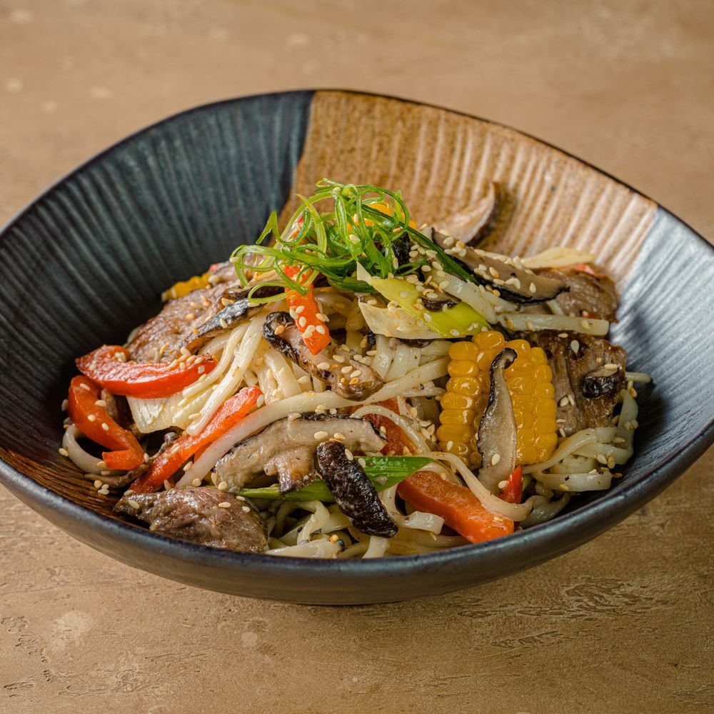 Вок с говядиной и японским удоном
