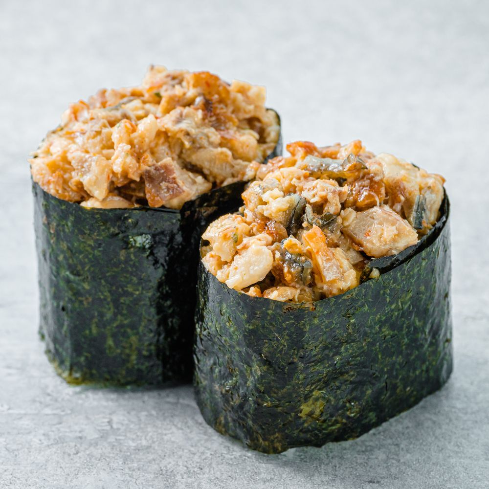 Угорь, водоросли нори, рис, чили