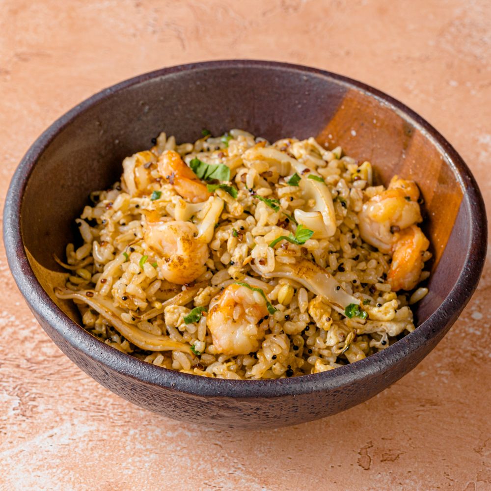 Жареный рис с кальмаром и креветками